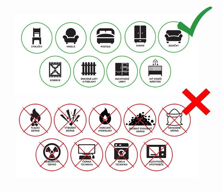 Prosíme obyvateľov, aby do kontajnerov ukladali len nekomunálny odpad (ako sú matrace, postele, sedačky, kreslá, stoličky, starý kuchynský nábytok, drezy, radiátory, staré sudy, kočíky, bicykle).